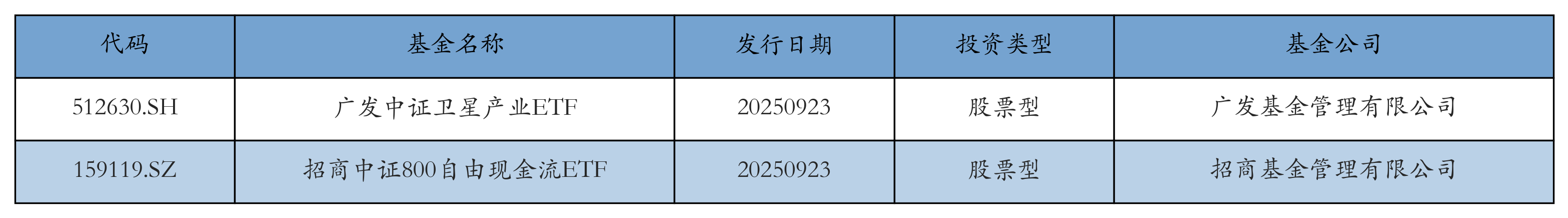 昨日有2只新基金发行,分别为:广发中证卫星产业ETF、招商中证800自由现金流ETF,详情见下表: