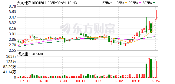 大龙地产再度涨停,4个交易日内录得3个涨停,累计涨幅为19.54%,累计换手率为58.95%。截至9:58,该股今日成交量1.28亿股,成交金额4.53亿元,换手率15.48%。最新A股总市值达30.46亿元。